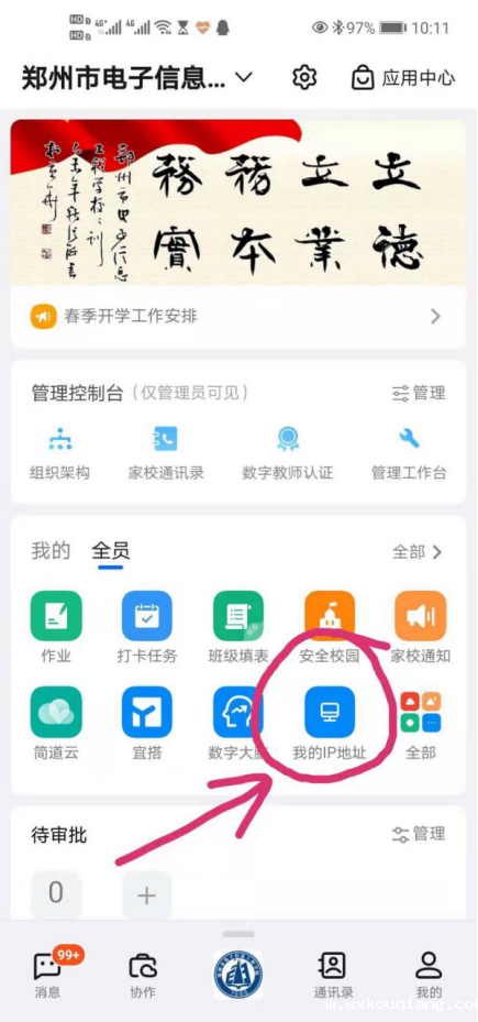 每个老师的IP地址都已在钉钉上公布,请到钉钉的“我的IP地址”上查看,如图所示: