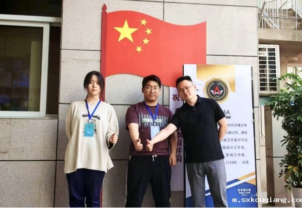 人物造型手绘设计赛项参赛学生和辅导教师王溢辞合影