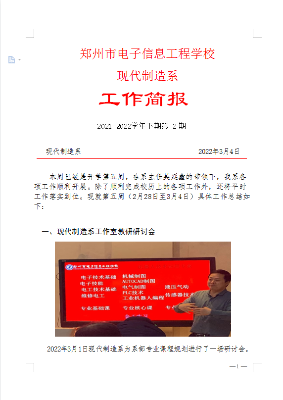 现代制造系工作简报-2