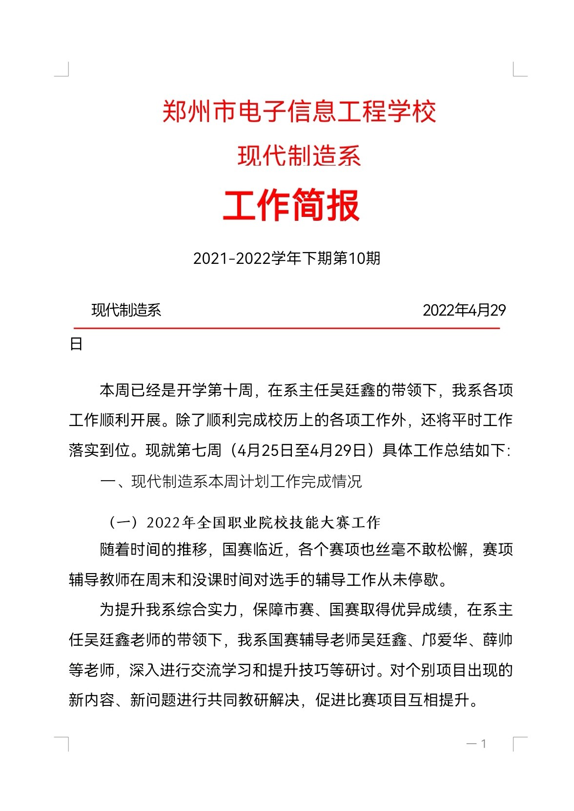 现代制造系工作简报-10