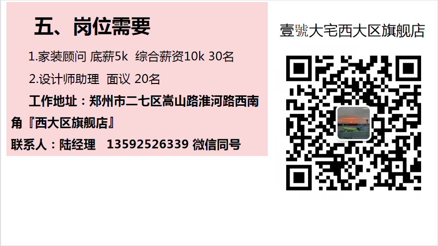壹號大宅西大区旗舰店诚聘
